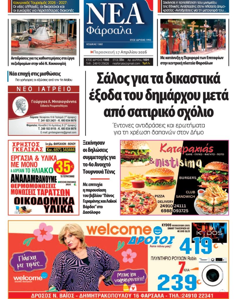 Το Δημοτικό Συμβούλιο Φαρσάλων συνεδριάζει στις 30 Οκτωβρίου, ημέρα Πέμπτη, για ειδική συνεδρίαση λογοδοσίας και τακτική συνεδρίαση, στην αίθουσα συνεδριάσεων του Δημοτικού Συμβουλίου .