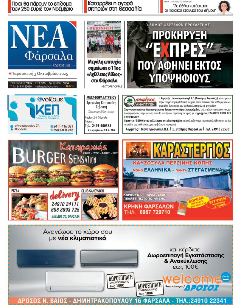 Ο Εμπορικός Επιχειρηματικός Σύλλογος Επαρχίας Φαρσάλων διοργανώνει για τα μέλη του μονοήμερη εκδρομή στην πανέμορφη Καστοριά, την Κυριακή 5 Οκτωβρίου 2025.